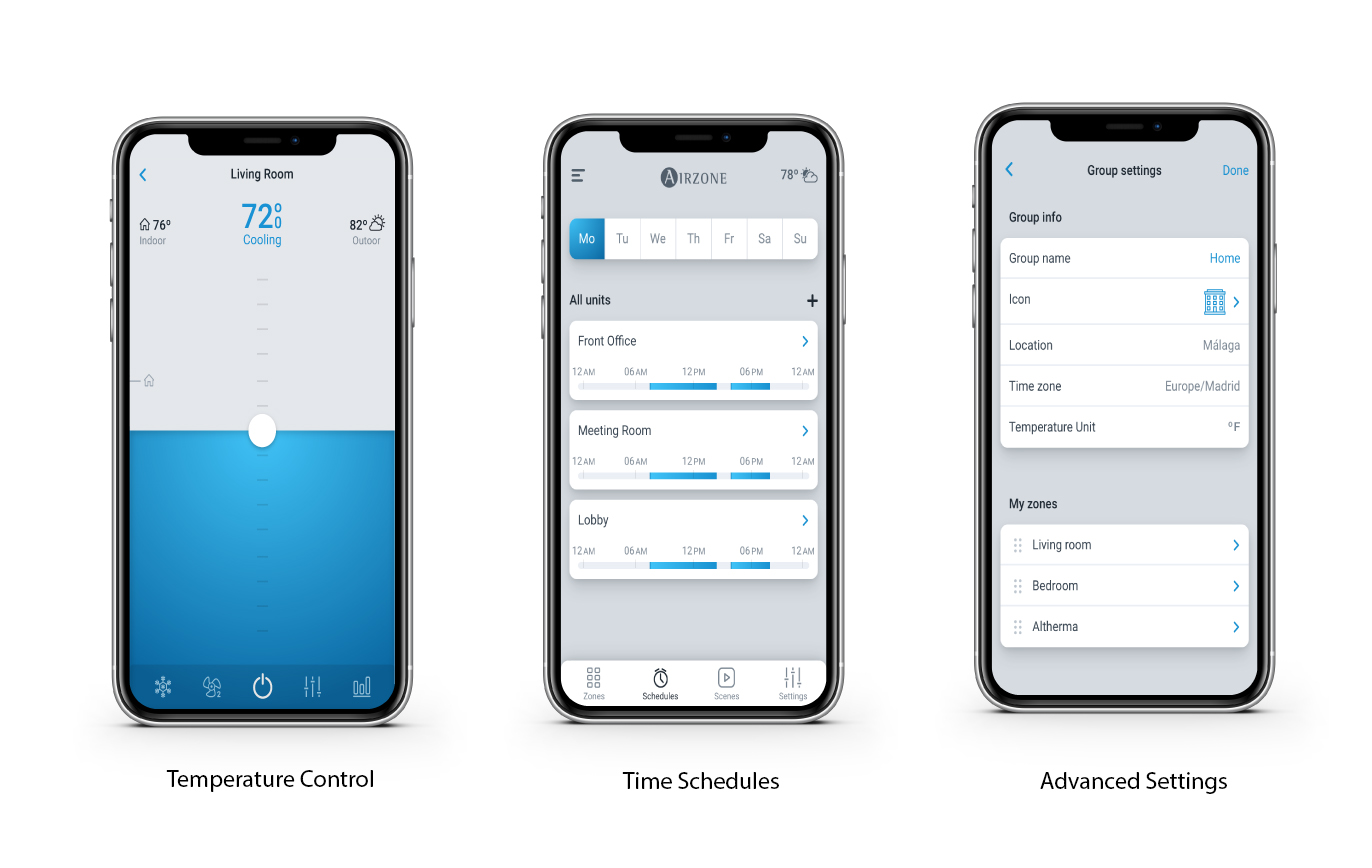Some functions available to you include ON/OFF, mode, set-point, fan speed, louver position, room temperature and error alert status from an iOS/Android smartphone. It is also compatible with Alexa and Google Home for voice control of your system. There are several functions available to you via the Airzone Aidoo (dependent on your indoor unit capabilities):