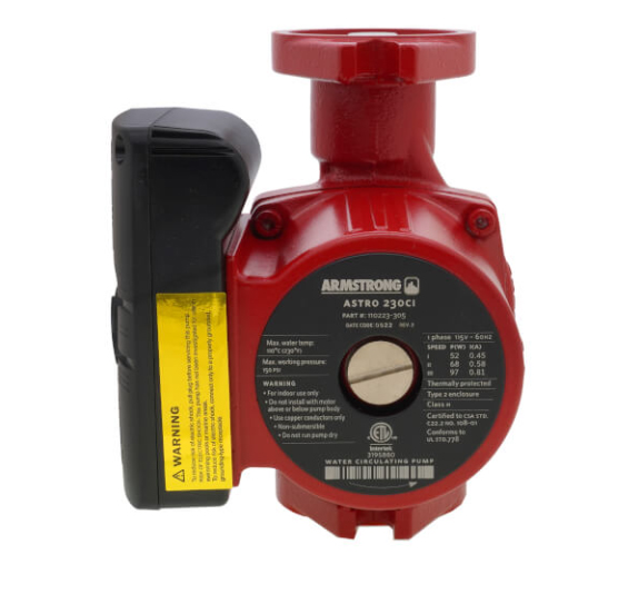 Designed for residential hydronic heating systems, the Armstrong Astro 2 230CI 3-Speed Cast Iron Circulator circulates the water in your closed-loop system. The 230CI 3-Speed circulator offers contractors a wide variety of replacement possibilities with a single circulator, reducing on-hand inventory. The 3 speeds give you a wide array of setting depending on the needs of the system. The Astro 2 230CI can be used to replace several brands of circulators. For a comparison of popular circulators, please see the Cross Reference Chart under Manuals and Guides.