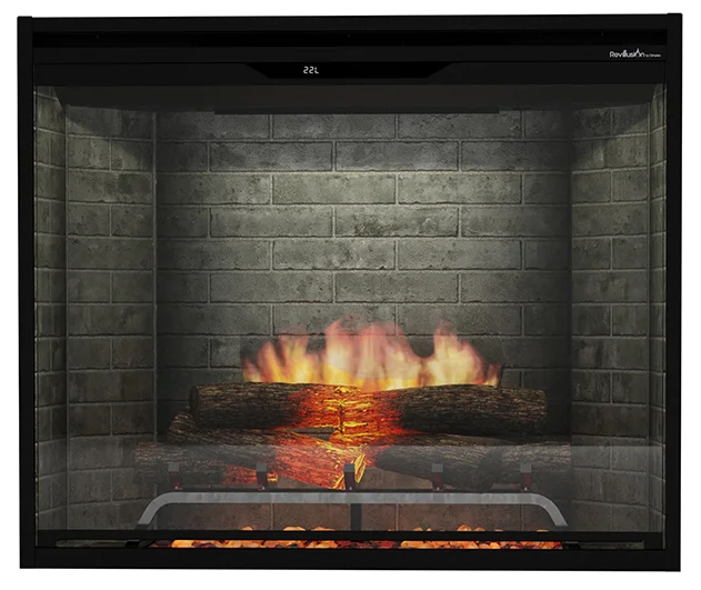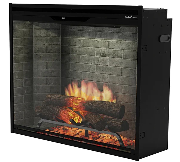 The Revillusion 36" portrait fully-recessed, built-in firebox can be installed right into a wall or into a pre-existing fireplace. The Revillusion firebox features larger, brighter, more random flames from within the Realogs than other electric fireboxes. The Realogs are life-like hardwood-cast logs and sit tiered on a grate, giving your firebox greater depth. To add to the realistic look, the reflective flame panel, a translucent acrylic panel, helps to show off the dazzling display of flames, making them appear as if they are coming from within the logs. With Dimplex's ThruView Full-Depth Design, you can see right through the flames, straight to the back of the back of the firebox.