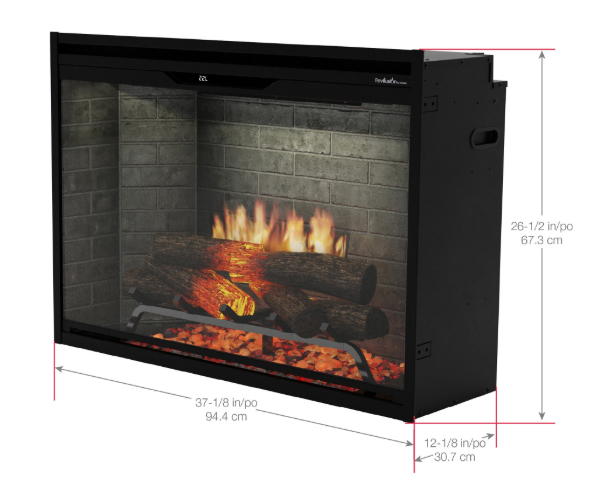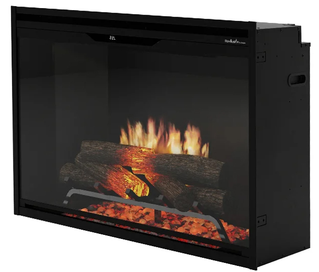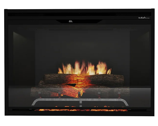The Revillusion 36" fully-recessed, built-in firebox can be installed right into a wall or into a pre-existing fireplace. The Revillusion firebox features larger, brighter, more random flames from within the Realogs than other electric fireboxes. The Realogs are life-like hardwood-cast logs and sit tiered on a grate, giving your firebox greater depth. To add to the realistic look, the reflective flame panel, a translucent acrylic panel, helps to show off the dazzling display of flames, making them appear as if they are coming from within the logs. With Dimplex's ThruView Full-Depth Design, you can see right through the flames, straight to the back of the back of the firebox.