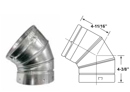 The 5", 45°/60° adjustable elbow swivels a full 360° at the base. It is adjustable from 45° - 60° for all of your installation needs. Elbows help you to avoid obstructions in installations with B vent pipe lengths in many exhaust applications. It can be used with natural gas or liquid propane, Category 1 appliances.