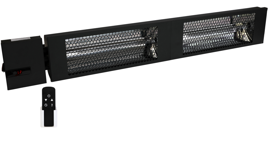 The heater offers 3 heating levels, as well as a 24-hour timer with increments in minutes, a permanent dimmer and the ability to change the switch to a double pole disconnect. The integrated, built-in controller, lets you select between the heat levels or easily set the timer. Also included is an RF remote control, making it even easier to control your heat. This 43" radiant heater has double carbon lamps.
