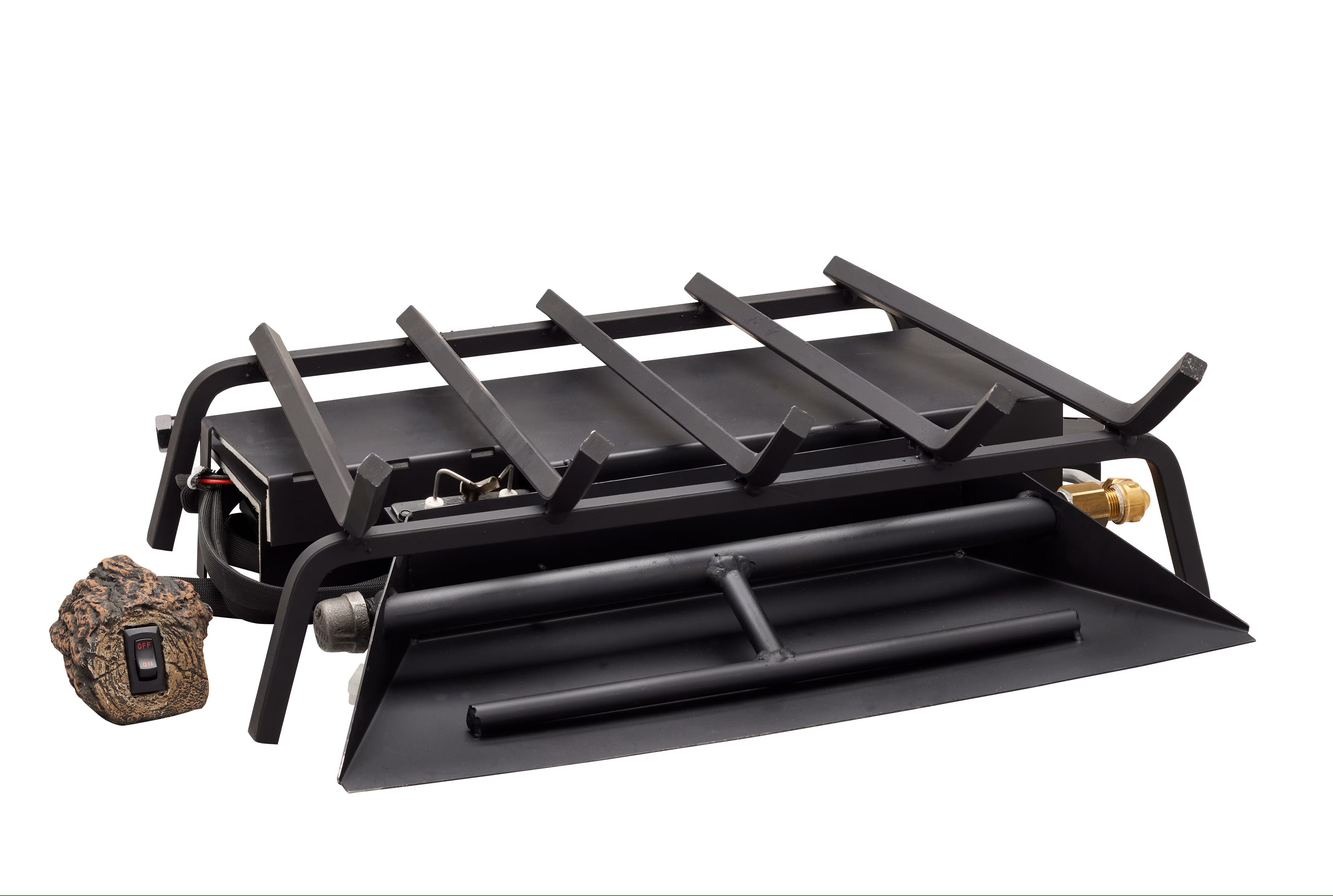 Each double tube burner includes the burner and grate as well as sand (NG only), vermiculite (to evenly distribute the flames across the length of the burner as well as insulating the burner plan), glowing embers (a decorative material that glows, enhancing the real look of your gas fire), and lava rock (for a charred authentic fire feel). A remote, installation instructions, flex line and pipe fittings and a damper clamp are also included in the box.