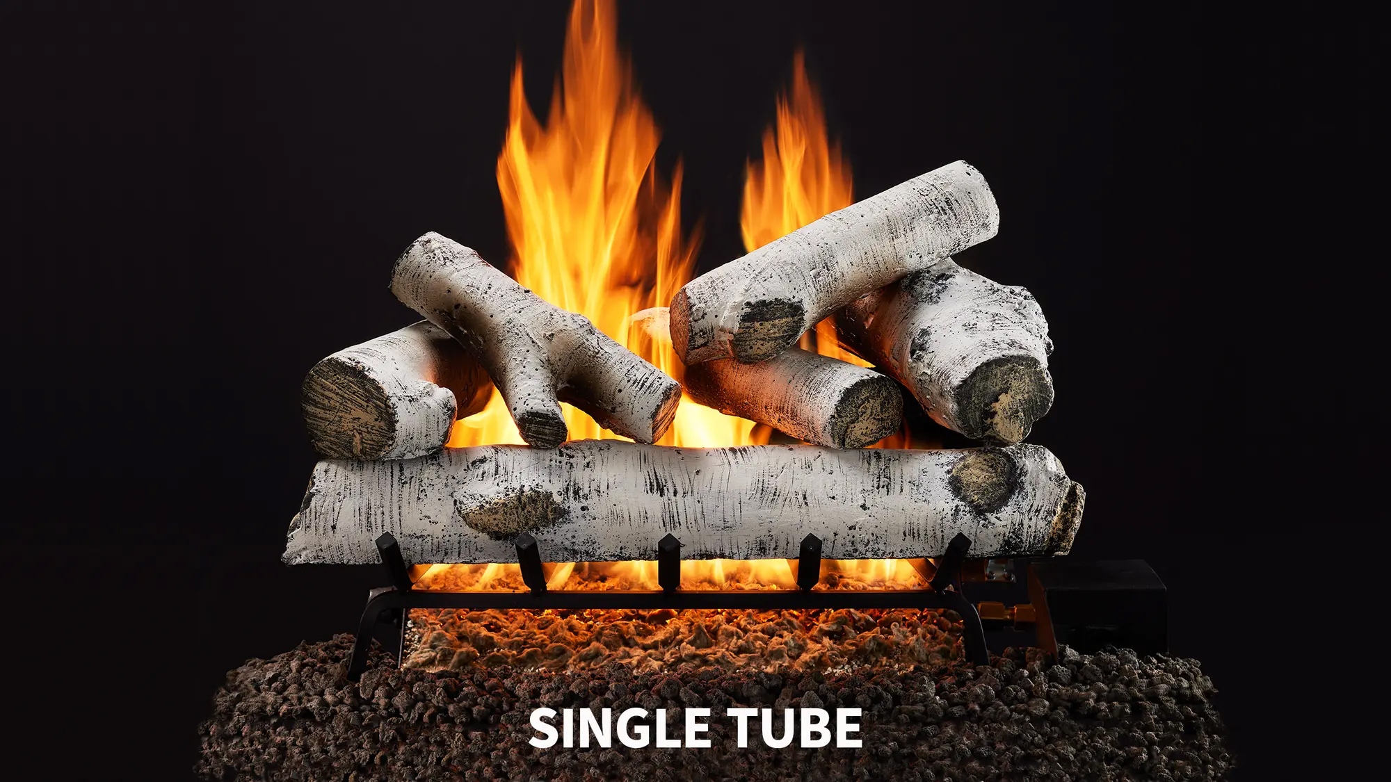 A vented, single or double tube burner is required (sold separately) for this log set. The Woodland Birch Log Set with your choice of burner style* and gas type is also available as a complete package - Majestic Woodland Log Set Package.