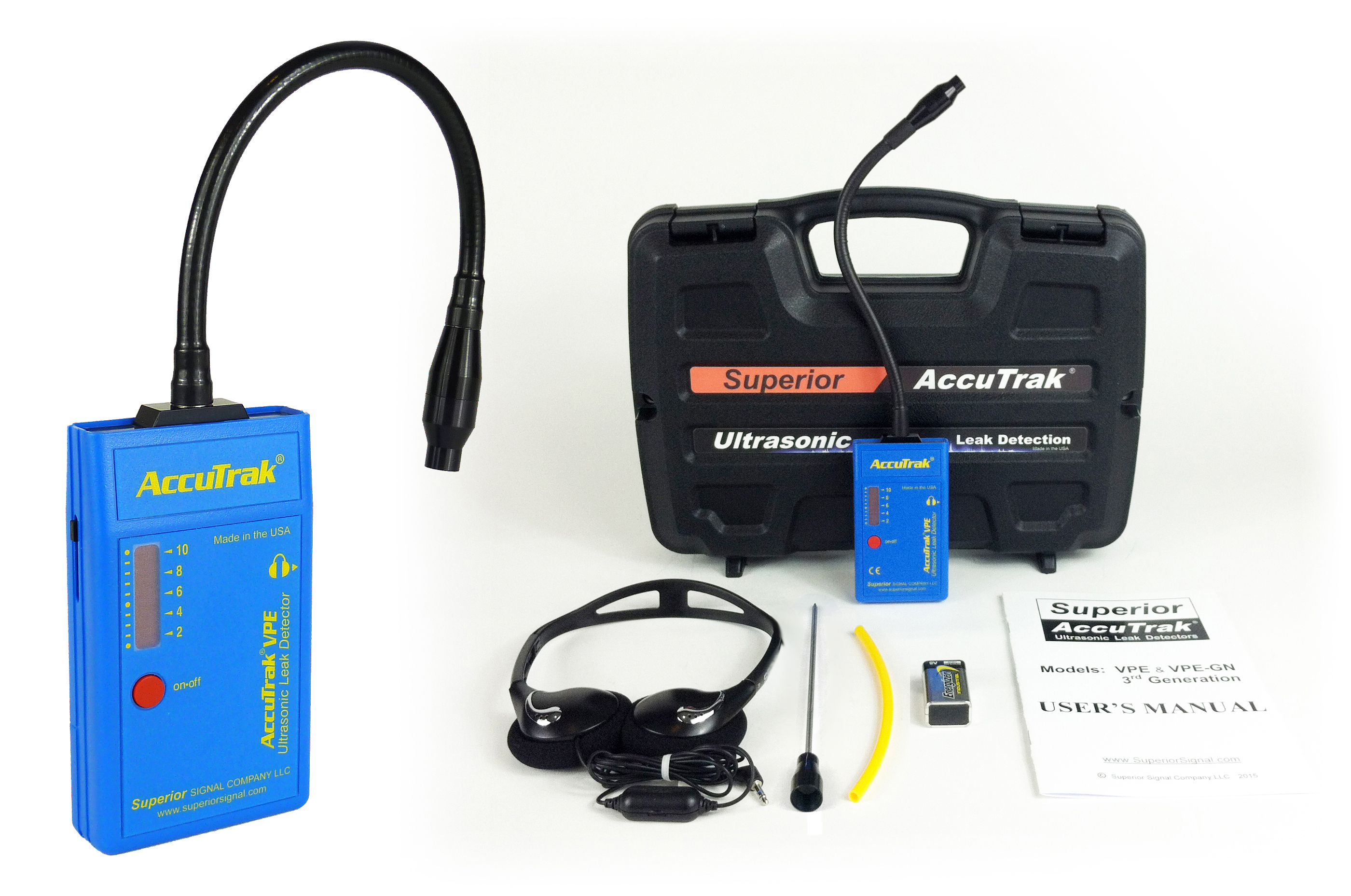 The AccuTrak VPE-GN is an easy-to-use, yet powerful tool to help technicians locate problems in many air conditioning, refrigeration, automotive as well as other types of systems. It is a highly ultrasonic sensor to detect high frequency sound traveling through the air, such as gas and air leaks.