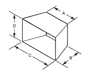 | REQUIRED MINIMUMS: | Rear Width (in.) (A) | Depth (in.) (B) | Front Width (in.) (C) | Height (in.) (D) |